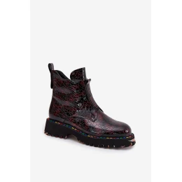 Lakované Dámské Botky Artiker – Bordové, zateplené, přírodní kůže