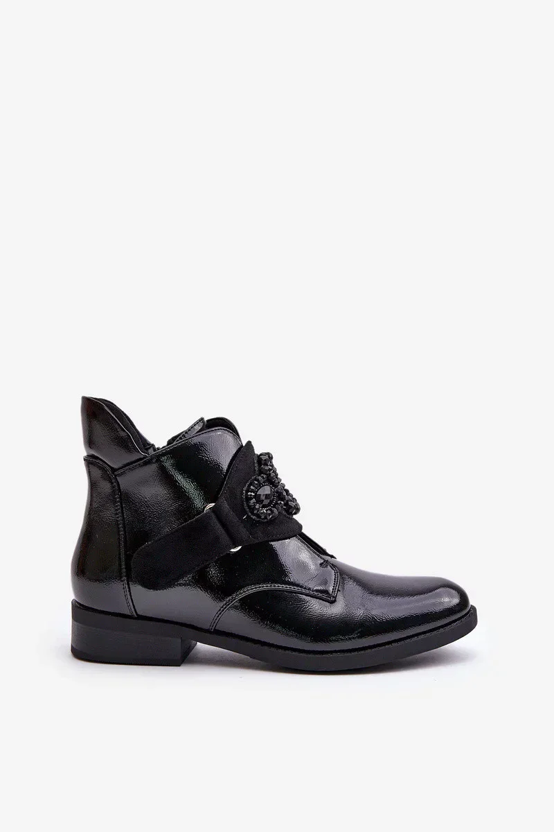 Lakované Dámské Kotníkové Boty S Ozdobou Zateplené S.Barski Černé