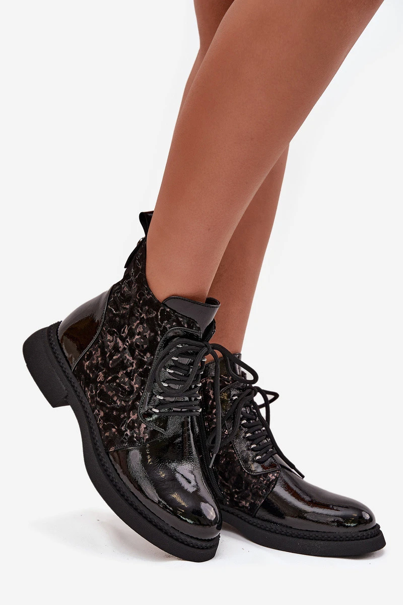 Lakované dámské kotníkové boty s podšívkou D&A CR52-613 Černé