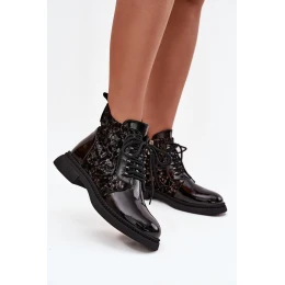 Lakované dámské kotníkové boty s podšívkou D&A model 21713599 Černé - S.Barski