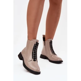 Lakované dámské kotníkové boty z pravé kůže D A model 21713796 108 béžové - D&A