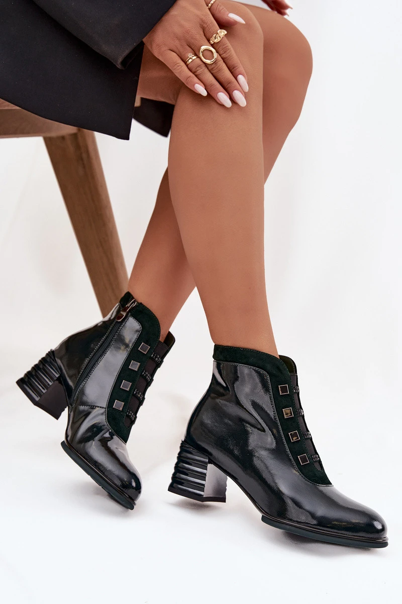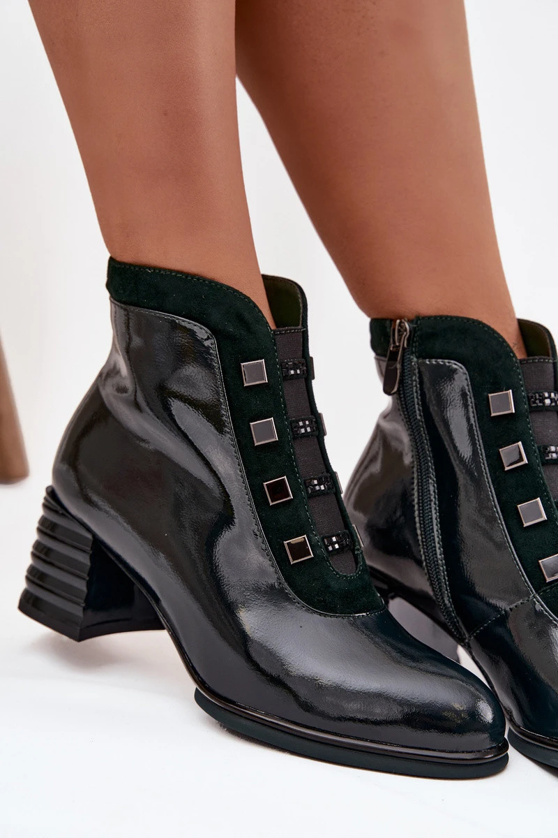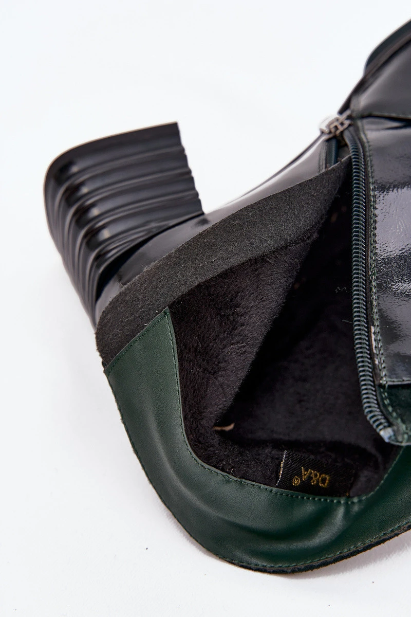 Lakované dámské kotníkové boty z přírodní kůže na podpatku DACR52696 tmavě zelené