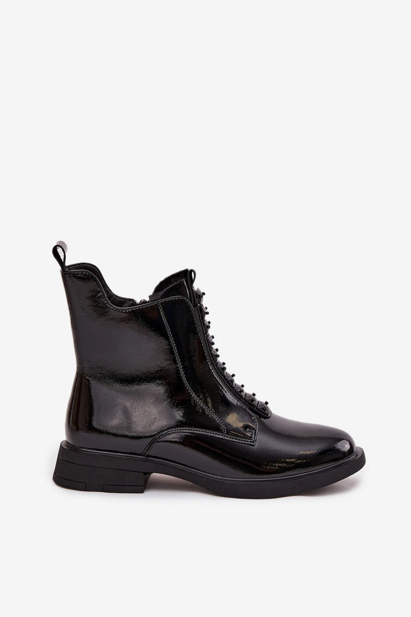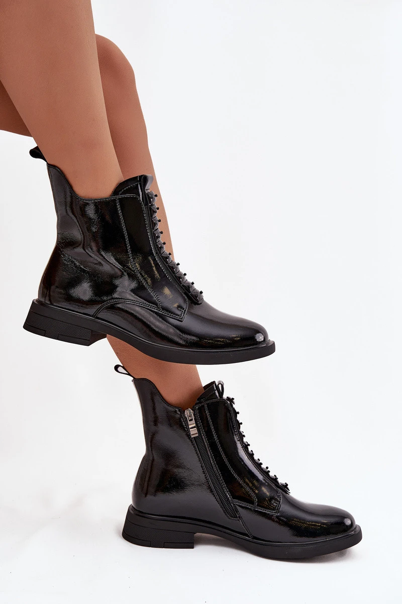 Dámské kotníkové boty vyrobené z přírodní lakované kůže jsou vhodné pro ženy, které ocení eleganci a moderní styl. Lesklý povrch materiálu jim dodává výjimečný charakter, čímž se boty stanou výrazným prvkem každého outfitu. Model je na zip, což usnadňuje obouvání a svlékání. Zaoblené špičky zdůrazňují klasickou linii boty a ozdobné detaily vpředu dodávají celku jemnou originalitu. Tyto boty jsou vhodné jak na denní nošení, tak na zvláštní příležitosti, ideálně doplňují jak casual, tak elegantní outfity. Při výběru velikosti se řiďte tabulkou velikostí. Při výběru velikosti se řiďte tabulkou velikostí.