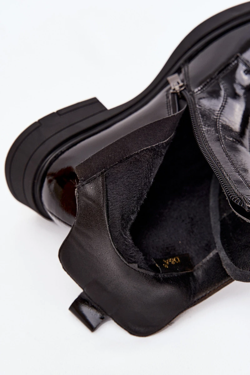 Lakované dámské kozačky z přírodní kůže D&A MR52-108 Černé