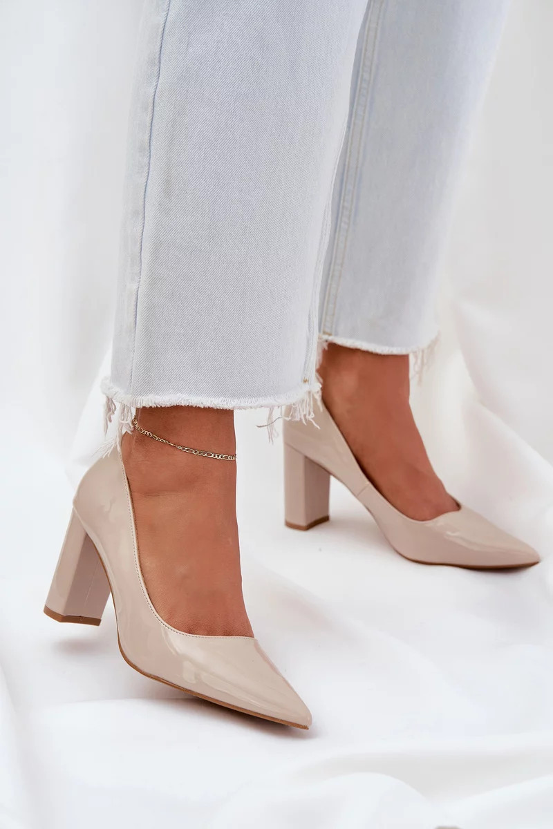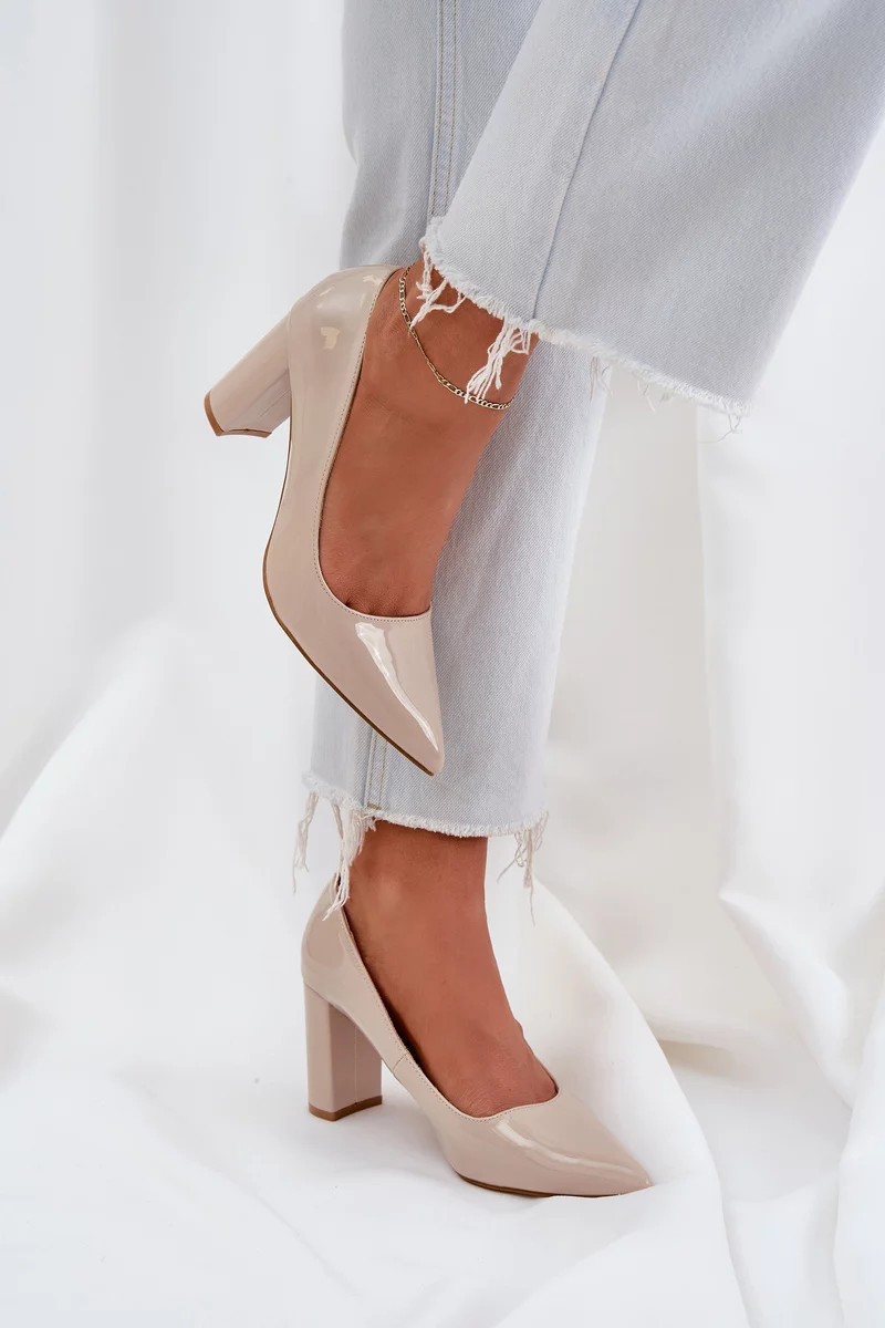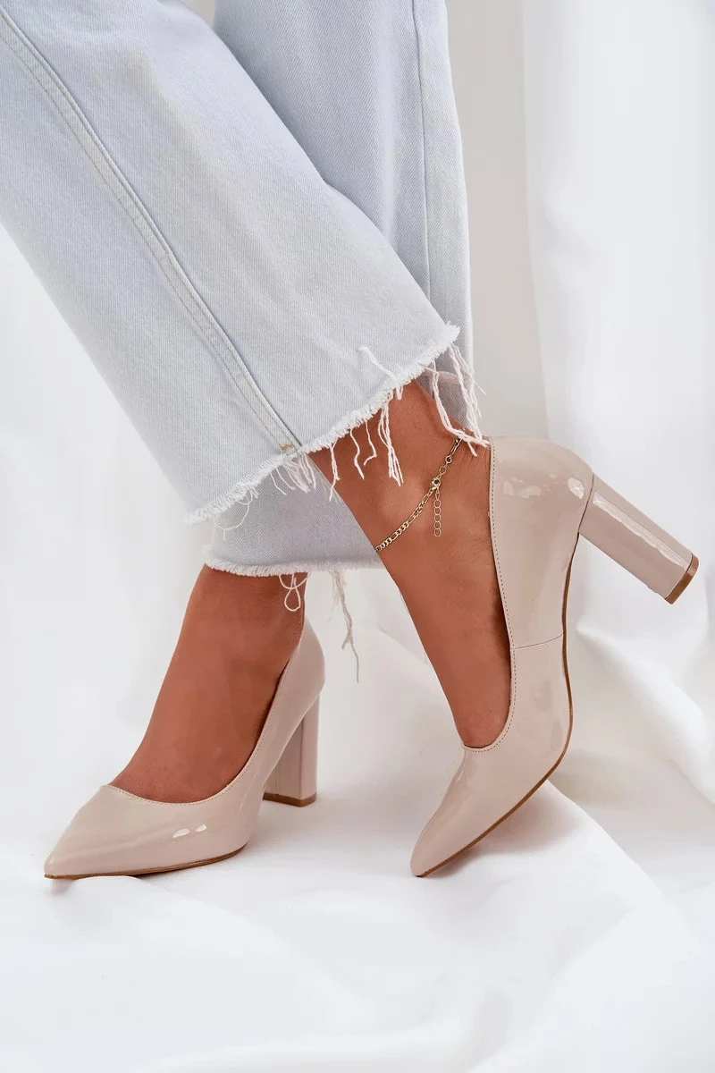 Lakované dámské lodičky na širokém podpatku Kilanne – béžové