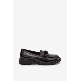 Lakované dámské mokasíny s korálky S.Barski HY52-541 – černé