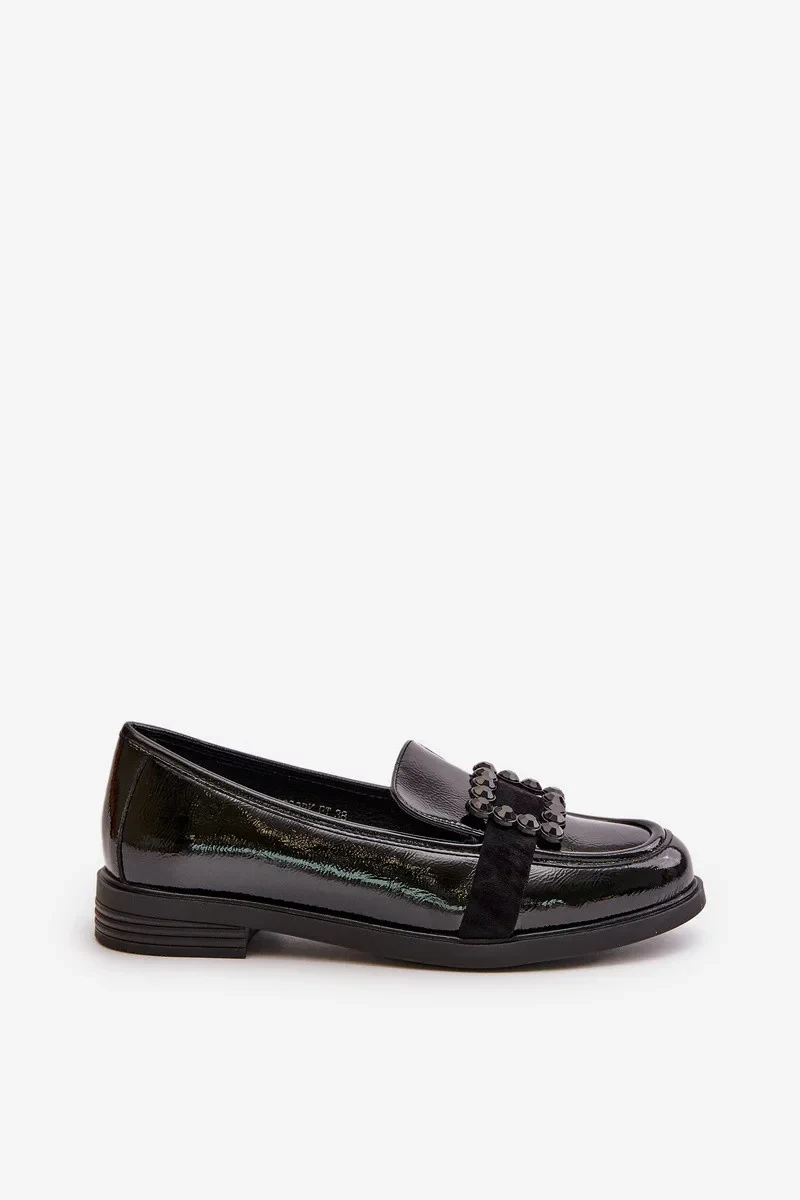 Lakované Dámské Mokasíny s Ozdobou Černé Vinceza