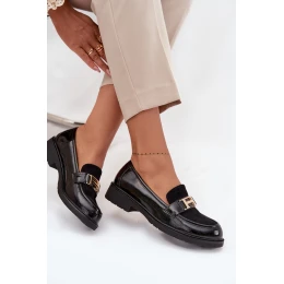 Lakované dámské mokasíny se zlatým detailem S.Barski – černé