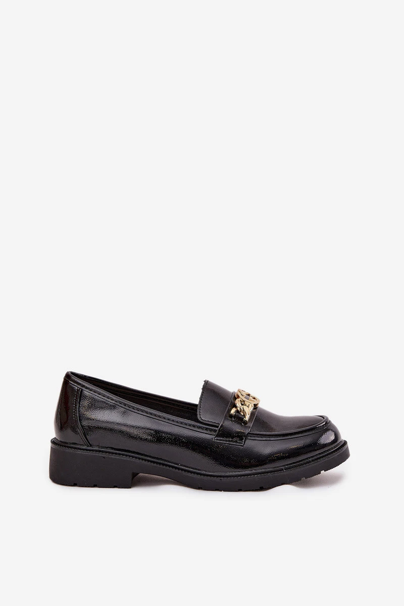 Lakované dámské mokasíny se zlatým ozdobným S Bar ski HY52 539 černé