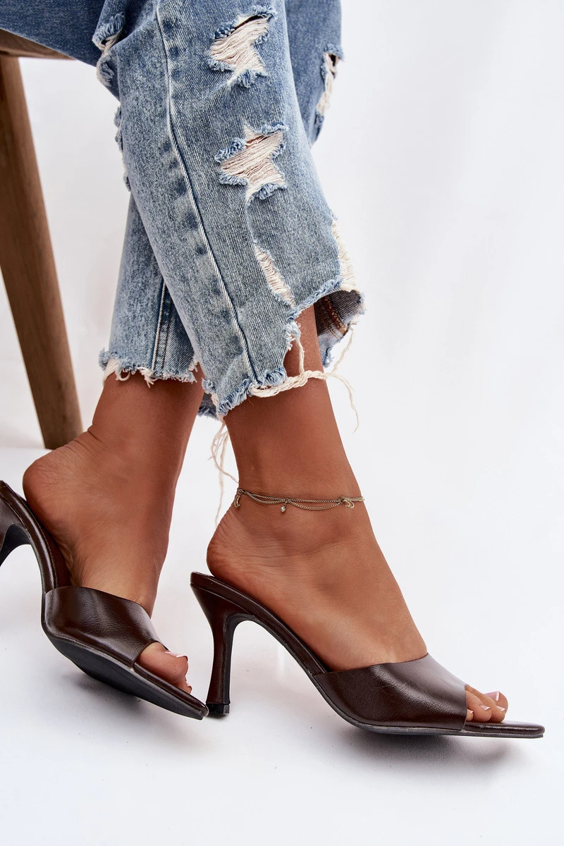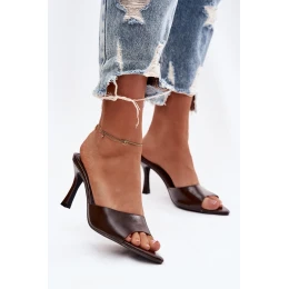Přidání recenze k Lakované dámské nazouváky na podpatku čokoládové model 21918908 - Boto
