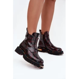 Lakované dámské obuv z přírodní kůže s bordó model 21712396 - Artiker