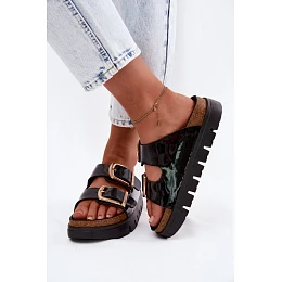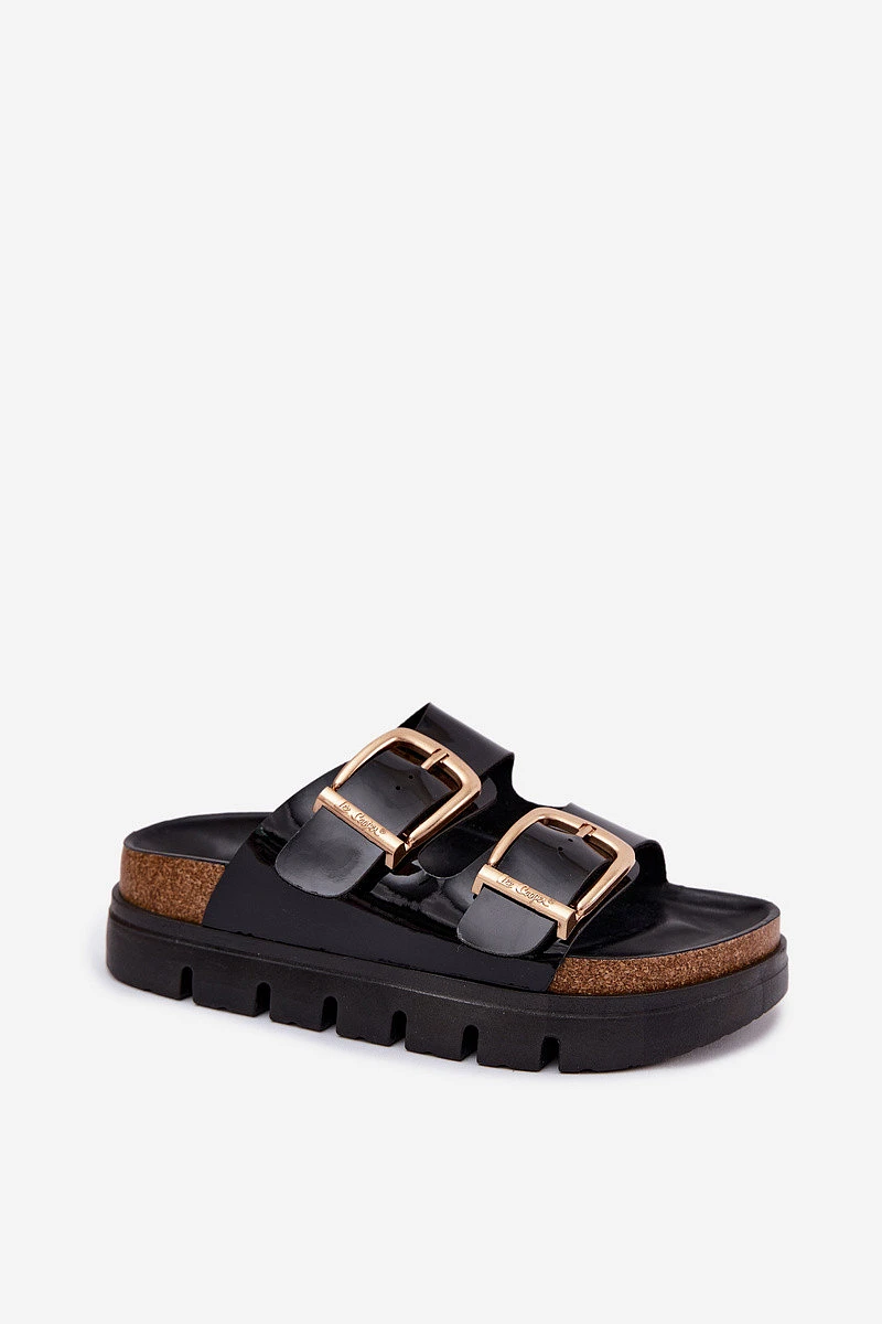 Lakované dámské pantofle na platformě se zlatými klipsy Lee Cooper LCW-26-35-4459L Černé