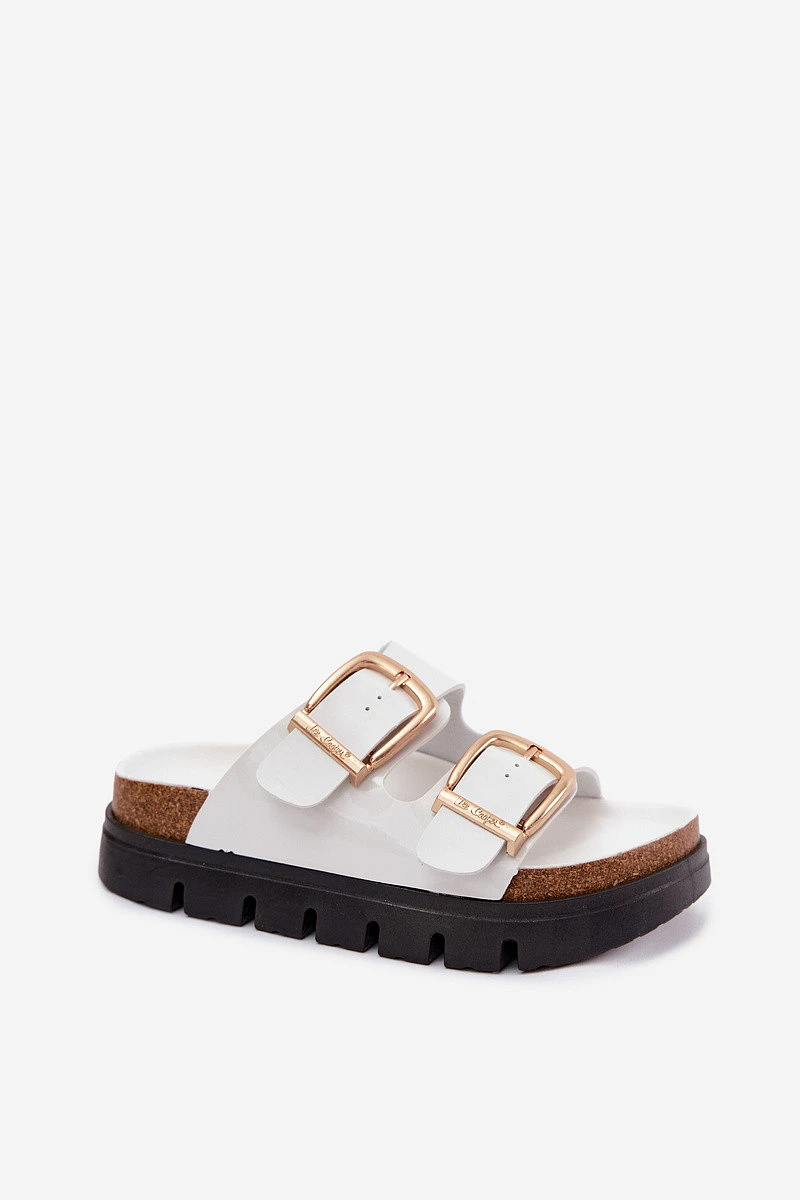Lakované dámské pantofle Ploché se zlatými sponami Lee Cooper LCW-26-35-4460L bílé