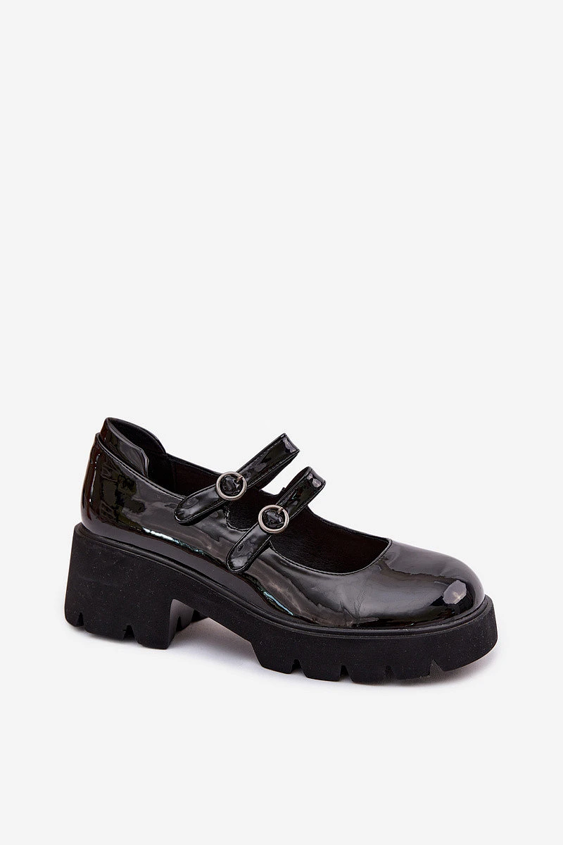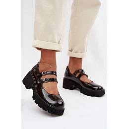 Dámské polobotky z lakované eko kůže jsou módní volbou s výrazným charakterem. Model na robustním podpatku a platformě zajišťuje stabilitu a pohodlí při chůzi. Zaoblené, široké špičky zaručují volnost prstů a pohodlné nošení. Na nártu jsou dva nastavitelné pásky, které umožňují přizpůsobení obuvi noze a tvoří stylový detail. Tyto působivé polobotky jsou ideální na různé příležitosti. Při výběru velikosti se řiďte tabulkou velikostí.