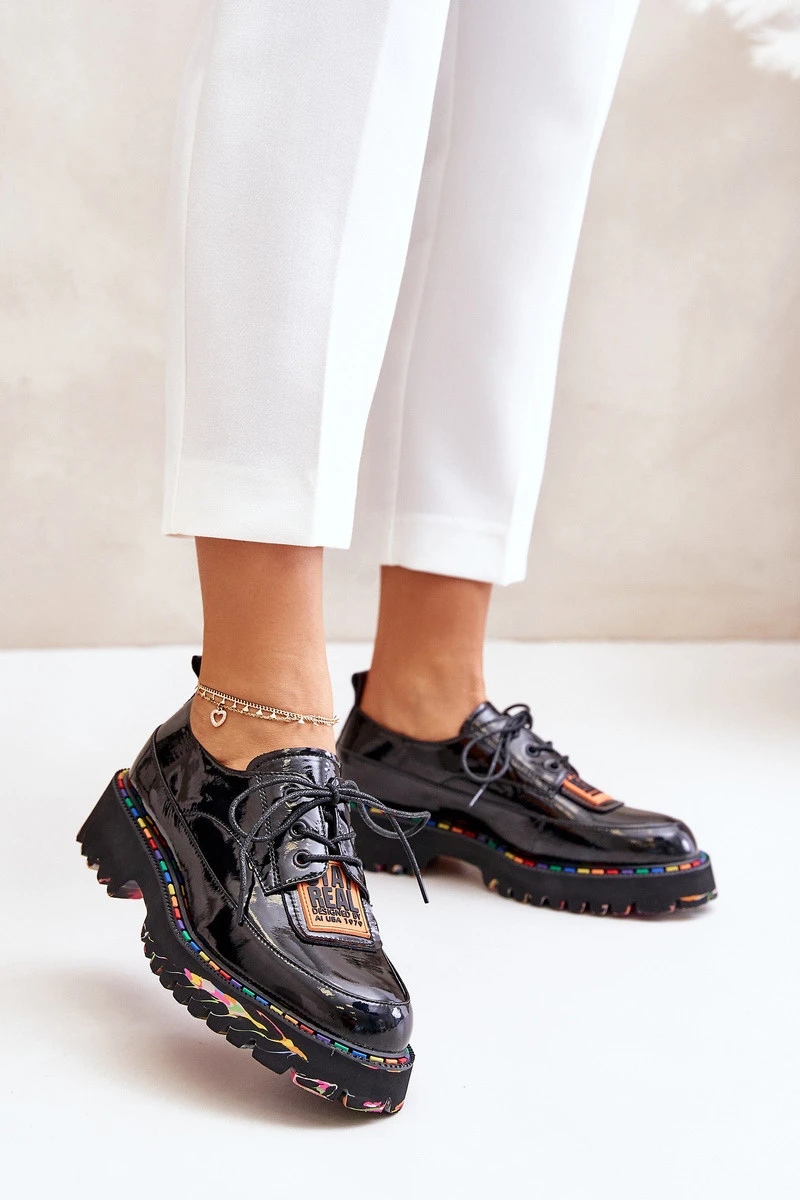 Lakované dámské polobotky na šněrování Artiker model 21672048 Černé - Boto