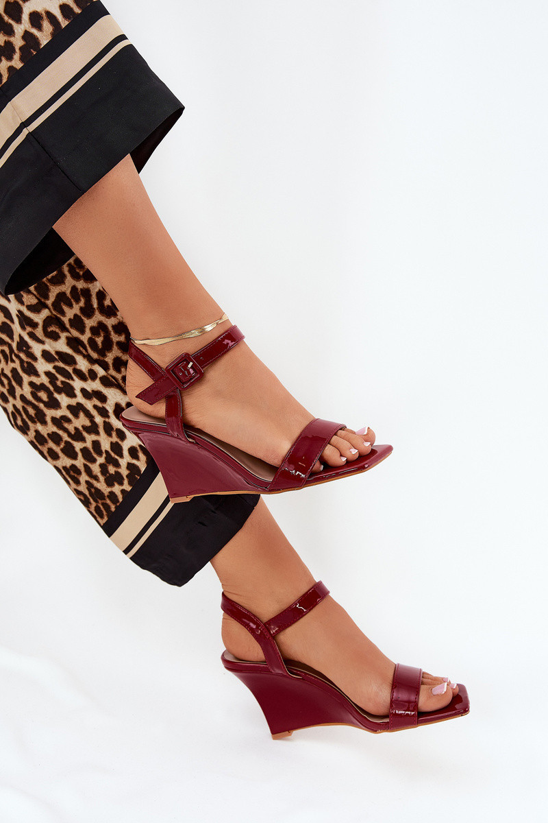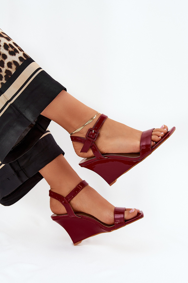 Lakované Dámské Sandály Na Klínu Bordové Vliraya