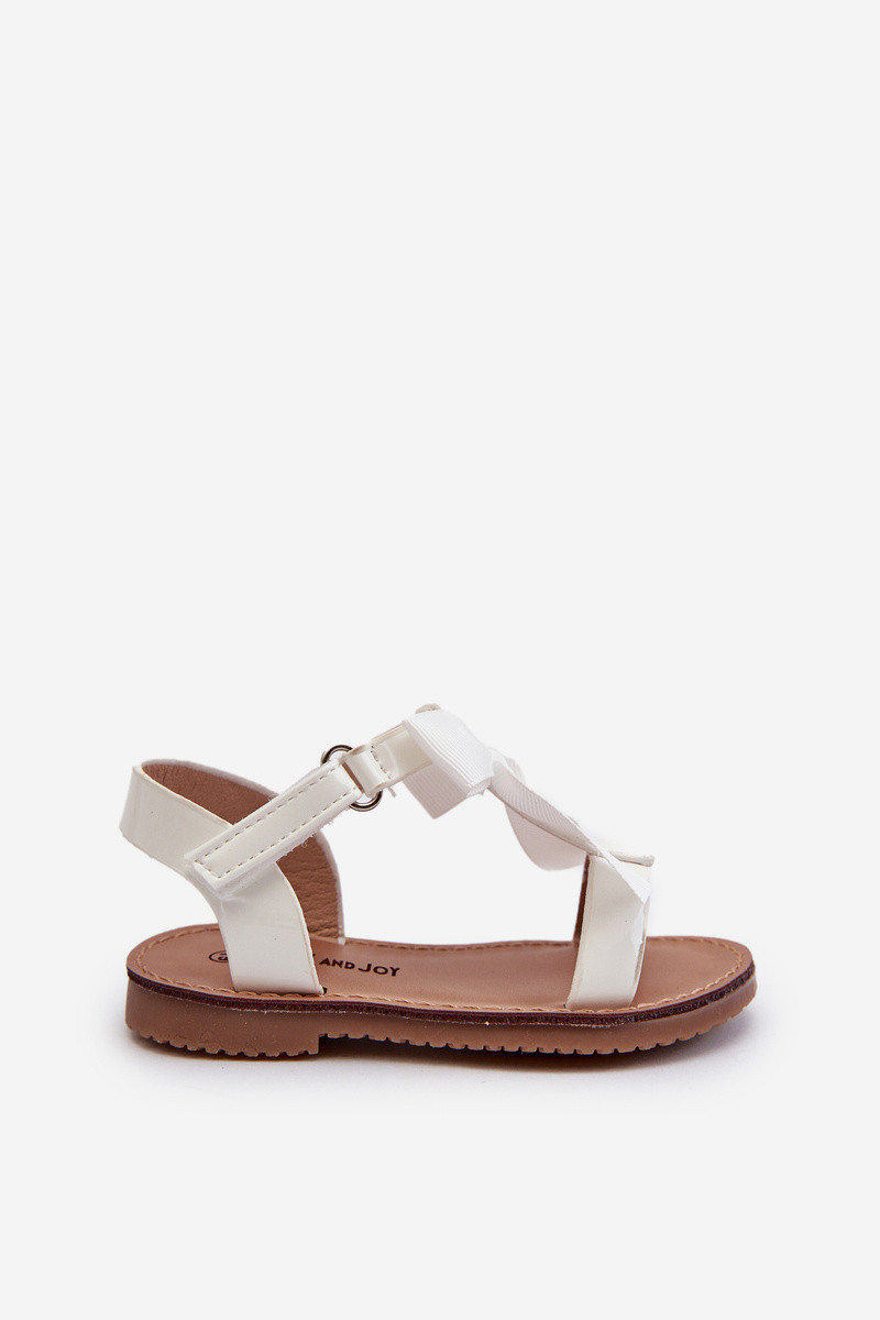 Lakované dětské sandálky s mašlí na suchý zip, bílé model 21662926 - Boto