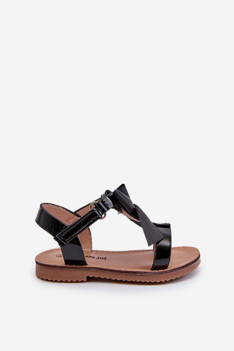 Lakované dětské sandálky s mašlí na suchý zip černé model 21662869 - Boto