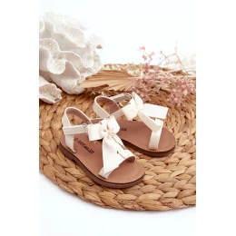 Lakované dětské sandálky s mašlí na suchý zip světle béžové model 21662907 - Boto