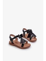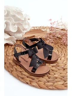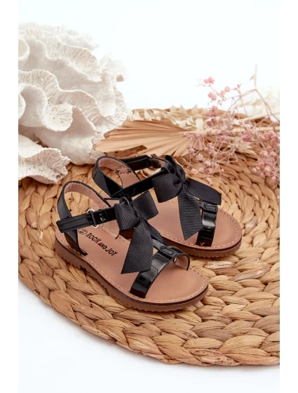 Lakované dětské sandály s mašlí na suchý zip, Black Joratia