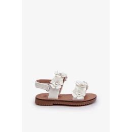 Lakované dětské sandály zdobené květinami, bílá Tinette