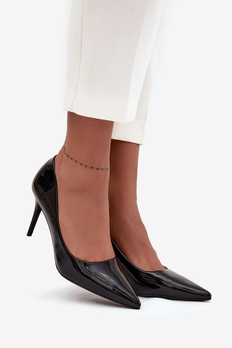 Dámské elegantní lodičky vyrobené z lakované ekologické kůže jsou nadčasovým modelem, který skvěle doplní ženský šatník. Lesklý povrch z nich dělá velmi stylový kousek, který dodává každé kombinaci šarm a eleganci. Tenké, špičaté nosy krásně zeštíhlují nohu, zdůrazňují její jemnost a celkovému vzhledu dodávají subtilní ženský charakter. Osazeny na štíhlém podpatku, nejenže přidávají pár centimetrů výšky, ale také tvarují postavu. Tento typ obuvi je vhodný pro různé příležitosti – od každodenního pracovního looku, přes formální obchodní schůzky, až po zvláštní příležitosti nebo večerní vycházky. Jejich univerzální a zároveň elegantní design umožňuje snadné kombinování s elegantní šaty, úzkými kalhotami nebo sukní. Při výběru velikosti prosíme řídit se tabulkou velikostí. Při výběru velikosti se řiďte tabulkou velikostí.