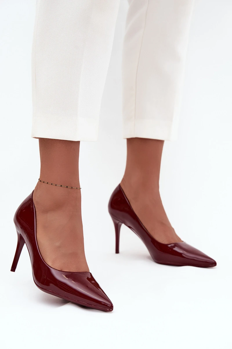Lakované ekokůže dámské lodičky s špičatými nosy bordó Jadira