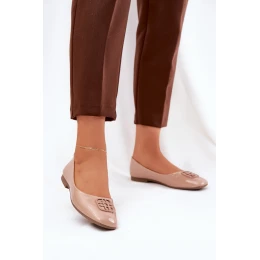 Lakované Elegantní Dámské Baletky S Ozdobným Detalem Béžové model 21690626 - VINCEZA