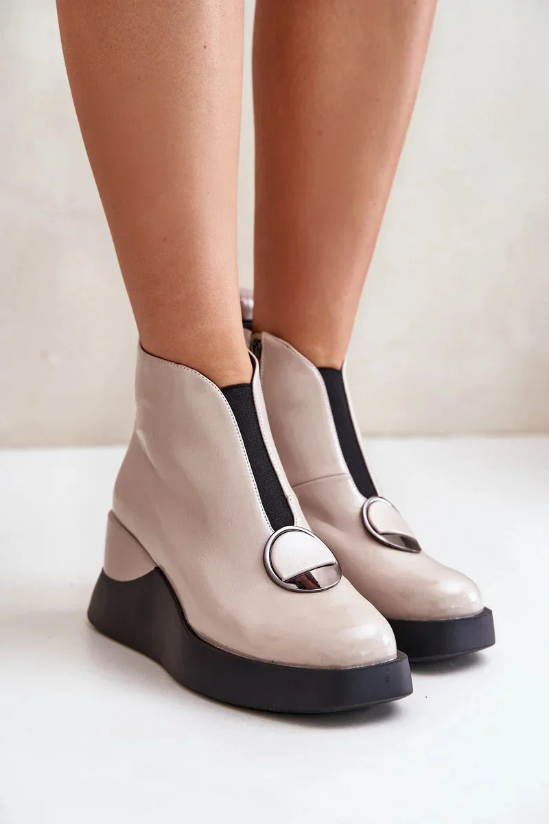 Lakované Kotníkové Boty Na Klínku Zateplené D&A Béžové