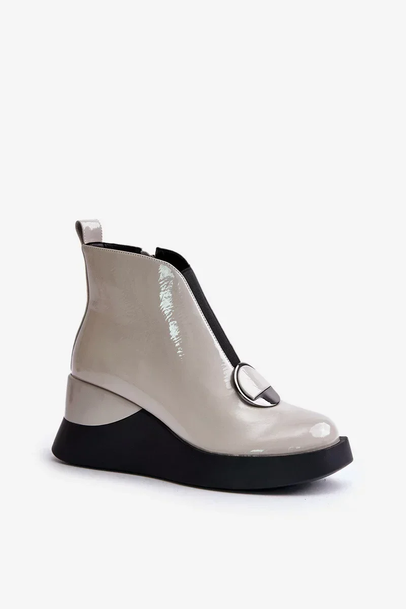Lakované Kotníkové Boty Na Klínku Zateplené D&A Světle šedé