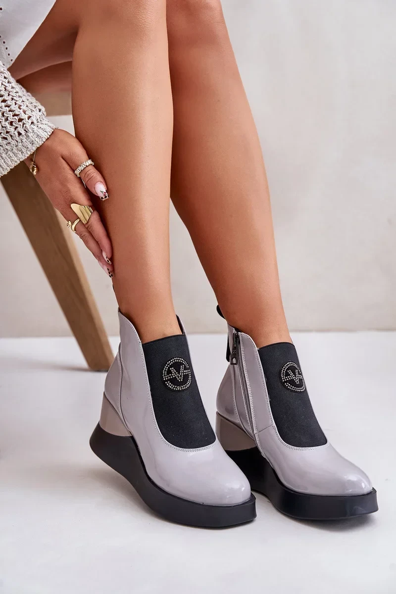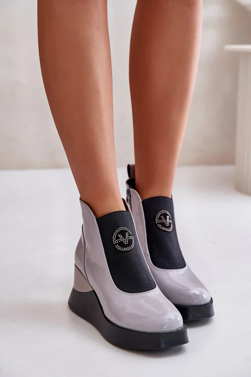 Lakované Kotníkové Boty Na Klínku Zateplené Vinceza Šedé