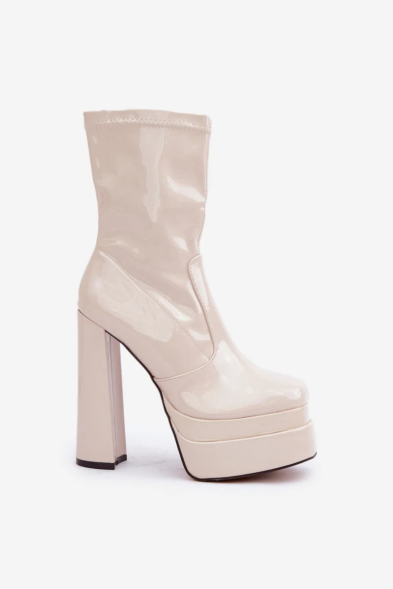 Lakované Kotníkové Boty Na Platformě A Vysokém Podpatku Béžové Lotisha