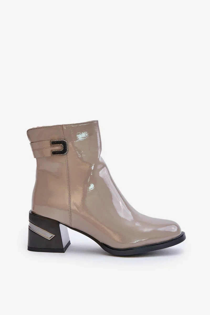 Lakované Kotníkové Boty Na Podpatku Zateplené Šedé