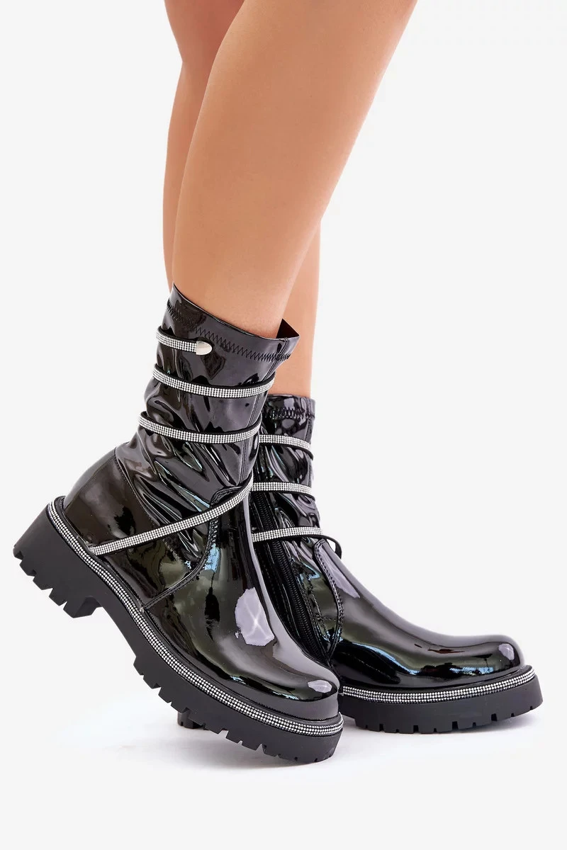 Lakované kotníkové boty s ozdobou černé Kikizelle