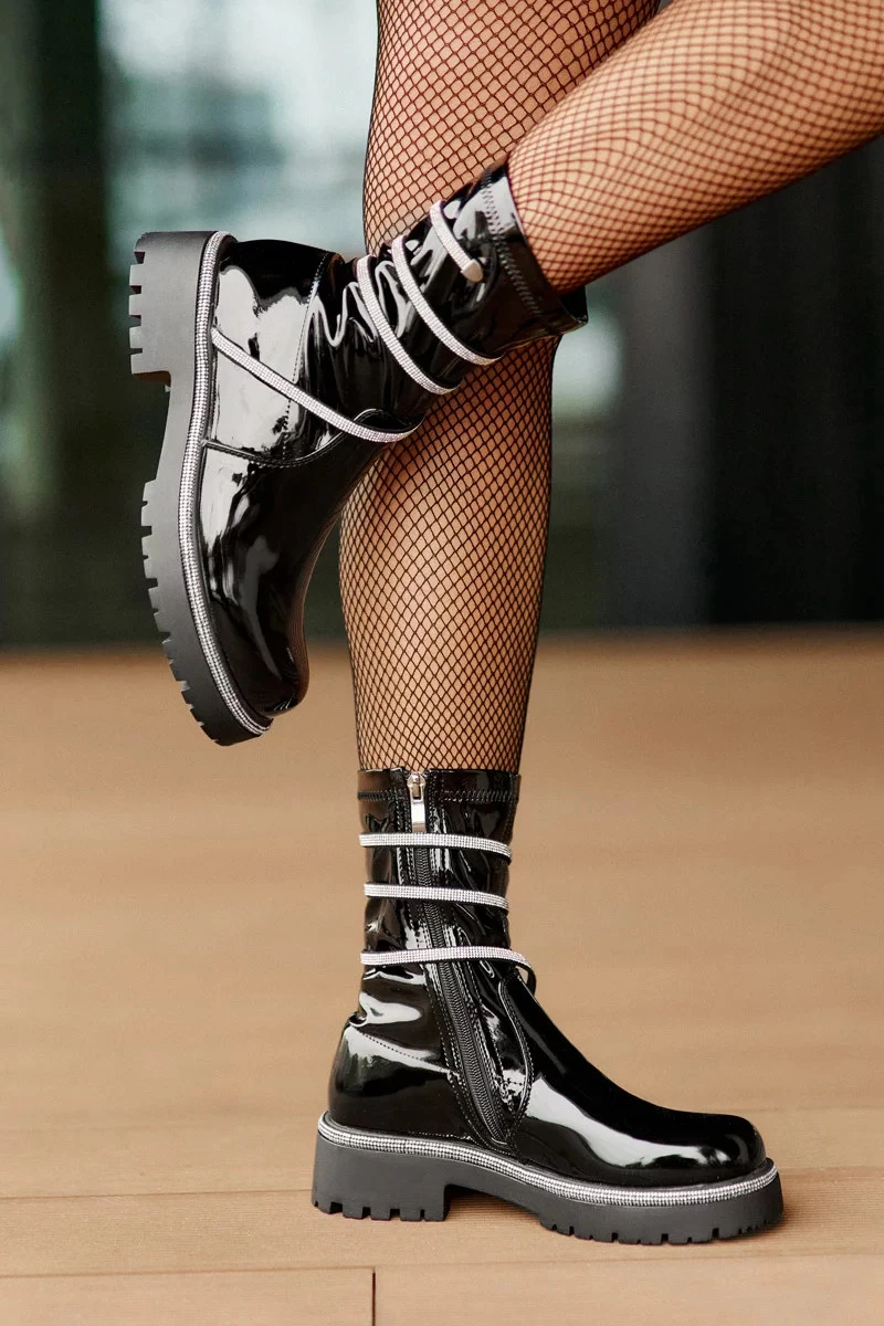 Lakované kotníkové boty vyrobené z eko kůže jsou elegantní volbou na každý den.