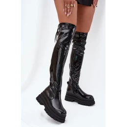Lakované Kozačky Kolena Na Masivní Platformě Černé model 21706943 - Boto