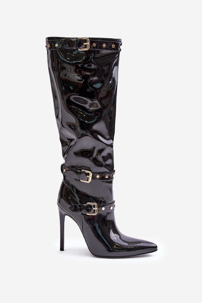 Lakované kozačky na jehlovém podpatku s přezkami černé Emiraethe