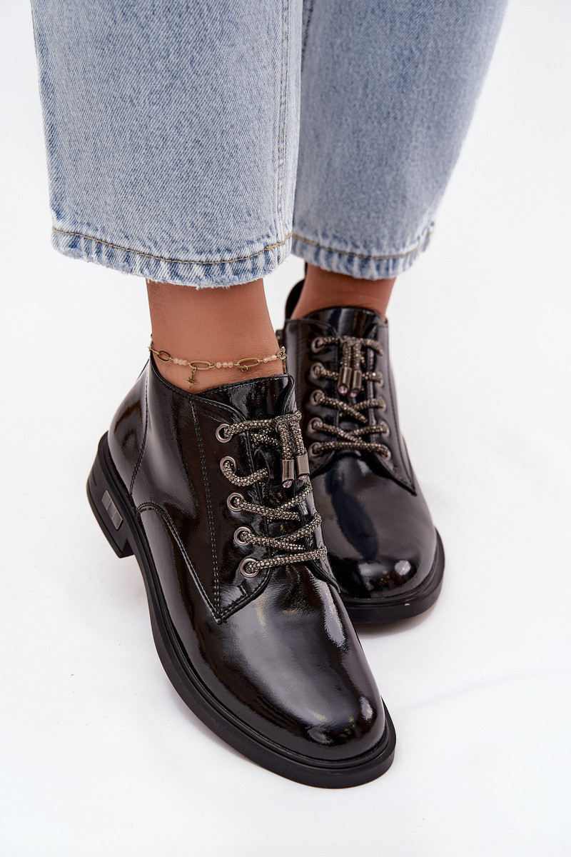 Lakované kožené dámské botky D&A – černé