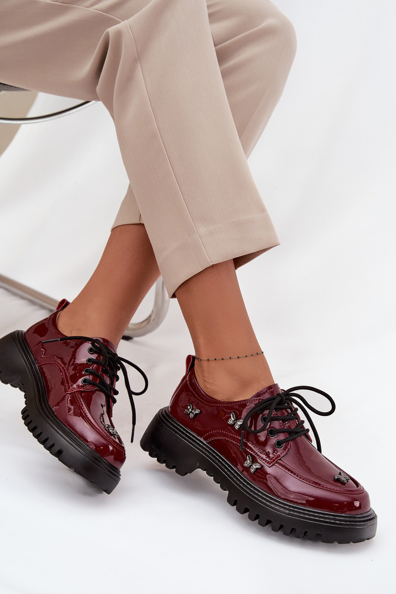 Lakované kožené dámské polobotky s přezkami Artiker 57C0336 bordó