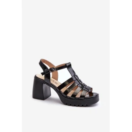 Lakované Kožené Dámské Sandály Na Podpatku Černé model 21658267 - VINCEZA
