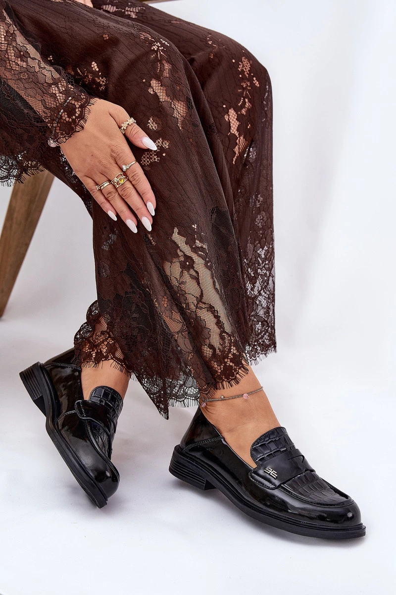 Lakované Kožené Mokasíny Dámské model 21691310 Černé - VINCEZA