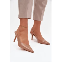 Lakované lodičky na jehlovém podpatku tmavě béžové model 21757869 - Boto
