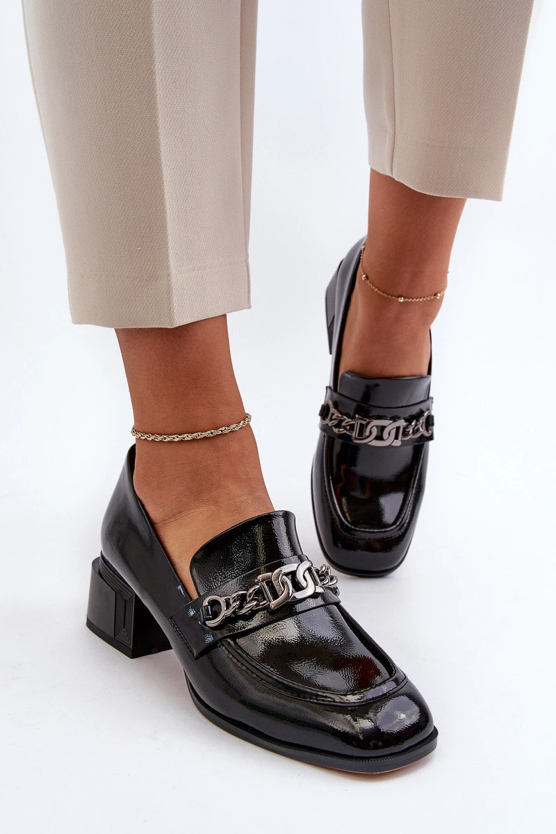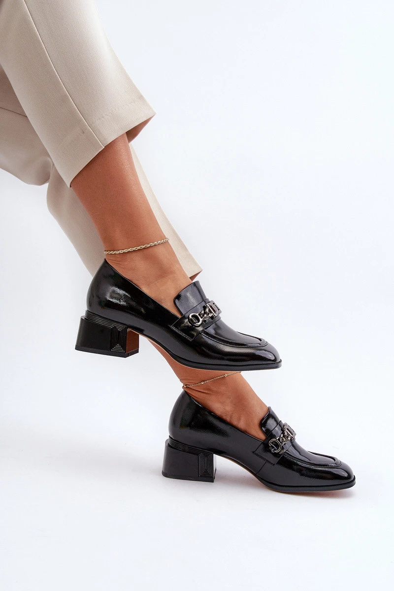 Lakované lodičky na podpatku černé S.Barski MR38-960