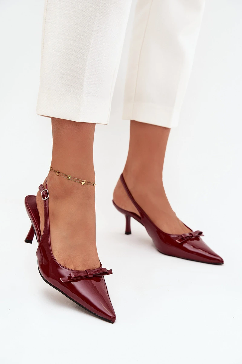 Lakované lodičky na podpatku s mašličkou bordó Olvena
