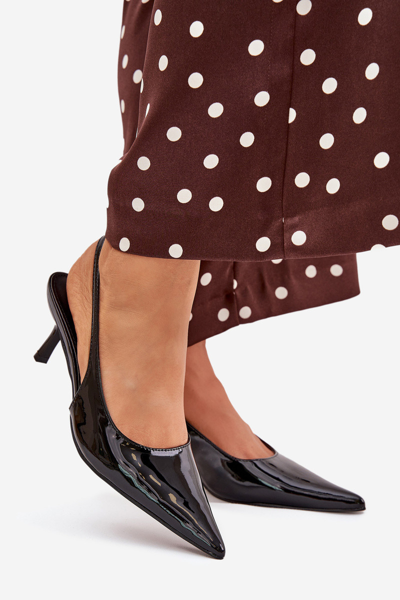 Lakované Lodičky Na Podpatku S Odkrytou Patou Černé Talira