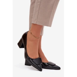 Lakované lodičky na podpatku s ozdobou Černé Isoline