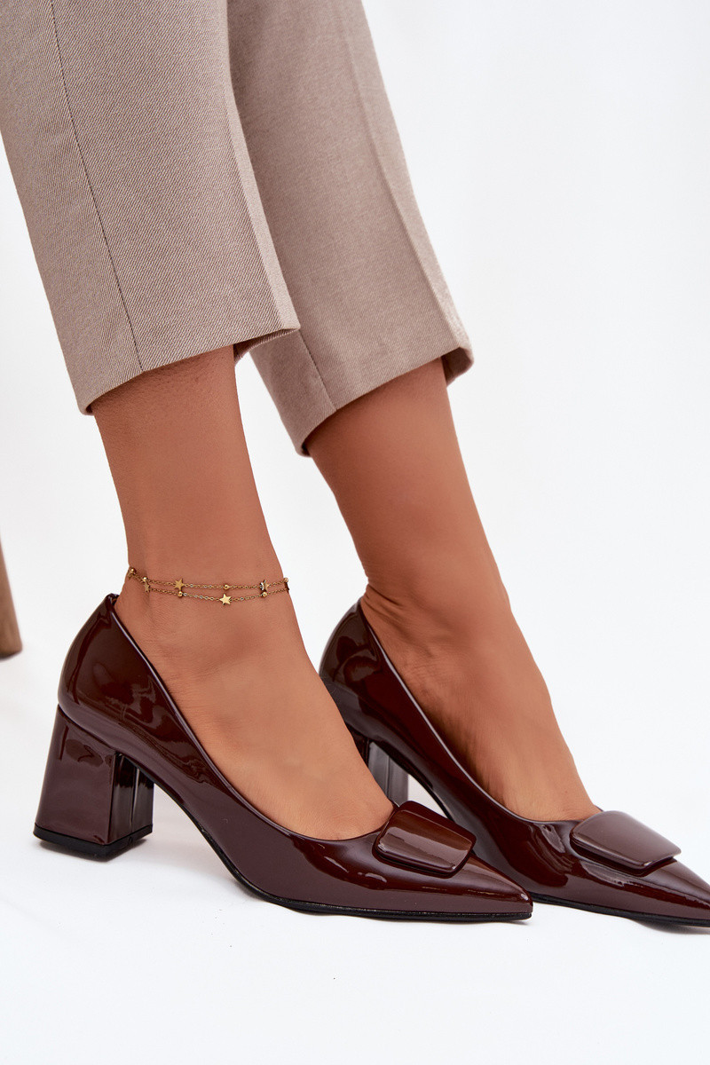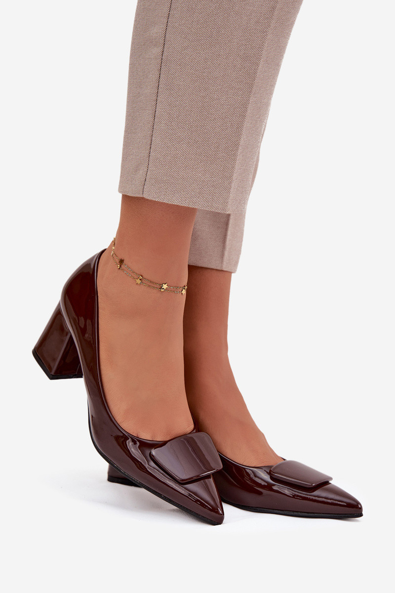 Lakované lodičky na podpatku s ozdobou čokoládové model 21752724 - Boto