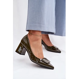 Lakované lodičky na podpatku s ozdobou tmavě zelené model 22039920 - Boto