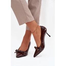 Lakované lodičky s mašlí čokoládové Janisse