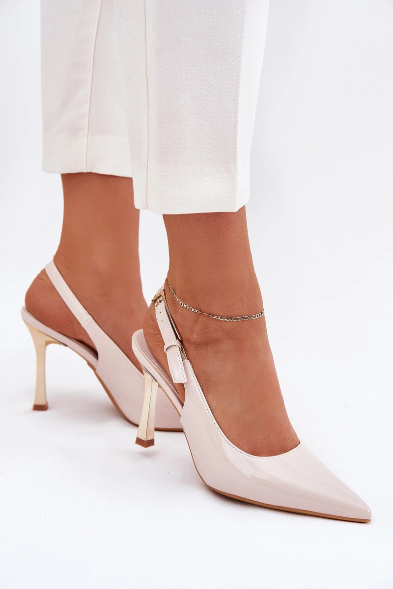 Lakované Lodičky S Otevřenou Patou A Špičatými Špičkami Světle Béžové Rivori